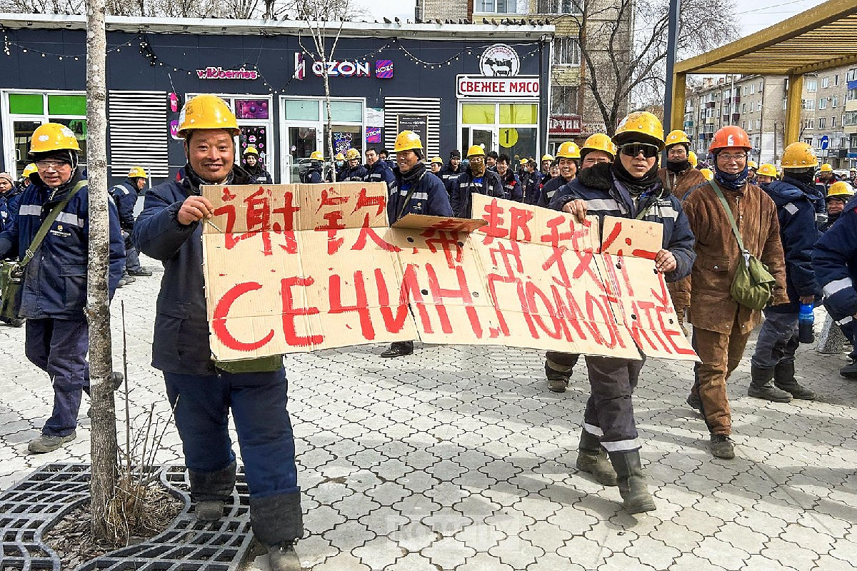 12 апреля около 150 китайских рабочих компании «Петро-Хэхуа» (подрядчик «Роснефти» по модернизации Комсомольского нефтеперерабатывающего завода) вышли на митинг из-за