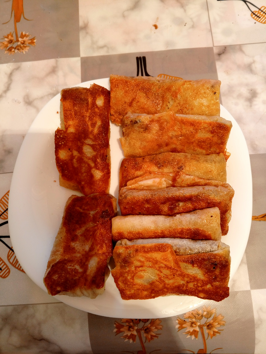 Вчера вечером поджарила блинчиков с ливером ,но мне кажется на вкус пирожки с ливером почему то вкуснее ,чем блинчики,хотя начинка одна и та же.В следующий раз блинчики приготовлю с начинкой из мяса.Но этих еще много.