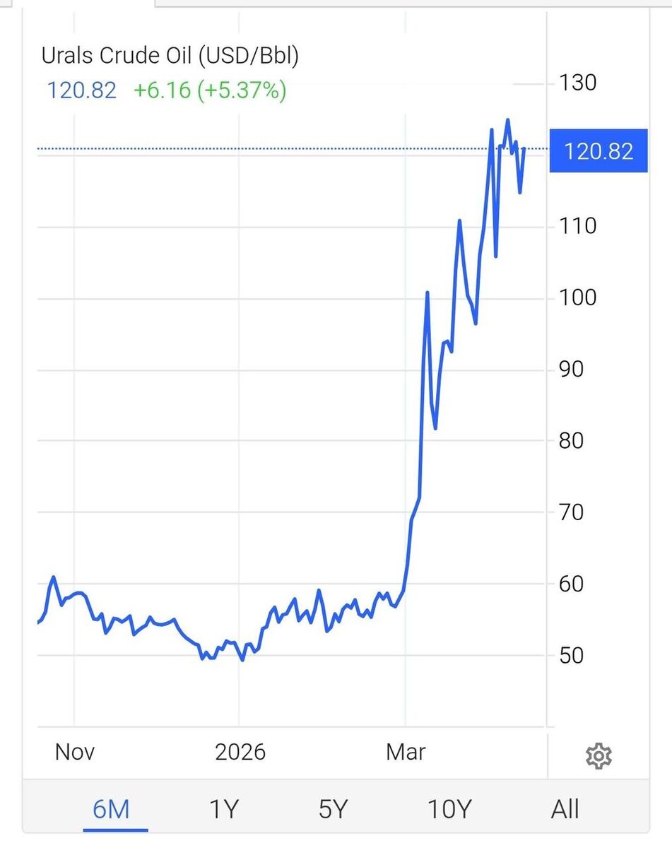 По данным трейдинговых сервисов, она подорожала до максимума с 2013 года и держится в диапазоне 114-120 долларов за баррель Введенная Трампом блокада поставок через Ормузский пролив толкает цены на Urals вверх, и Россия получает выгоду, так как покупатели ищут альтернативные источники. В итоге по данным ряда СМИ Европы, США отсрочили санкции против зарубежных активов Лукойла.
