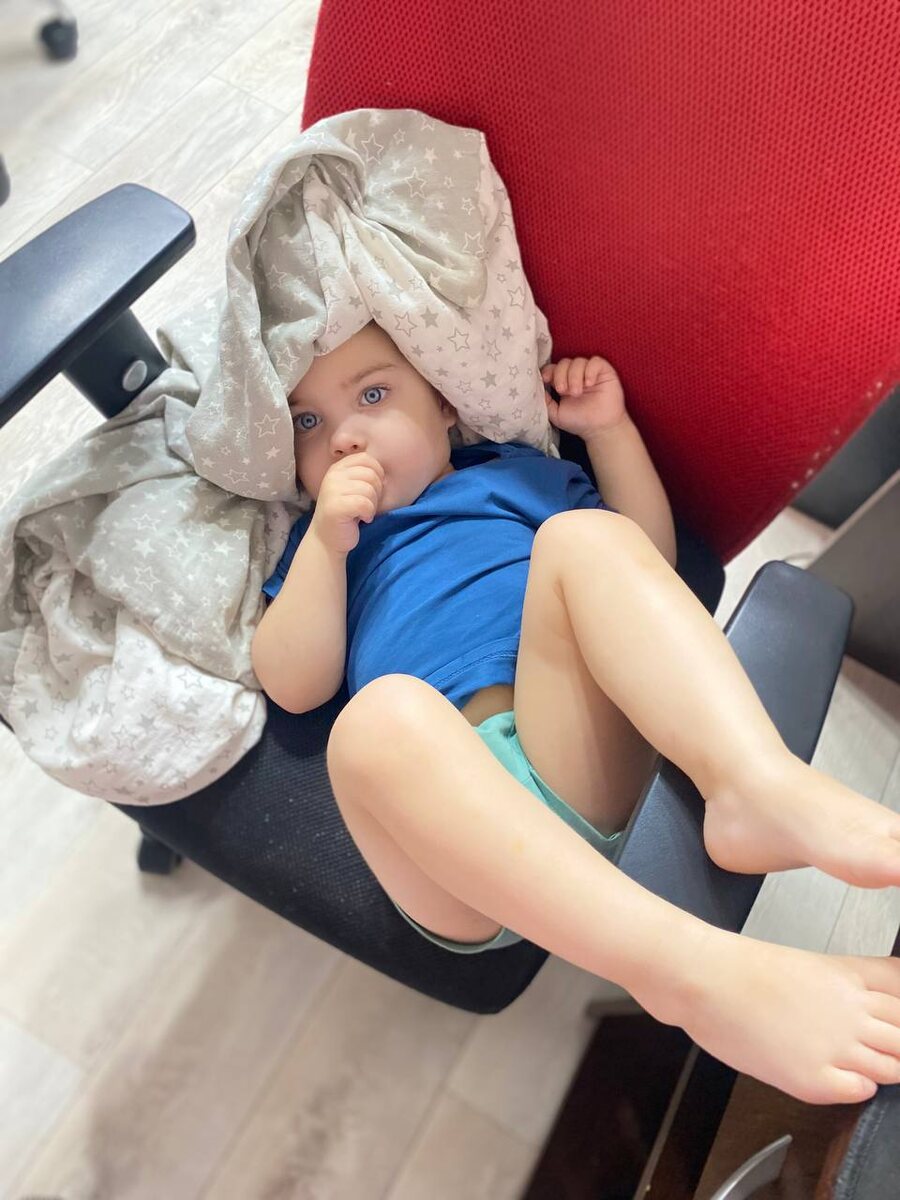 Ноги на стол, любименькое одеяло на месте. Палец, естественно, во рту.