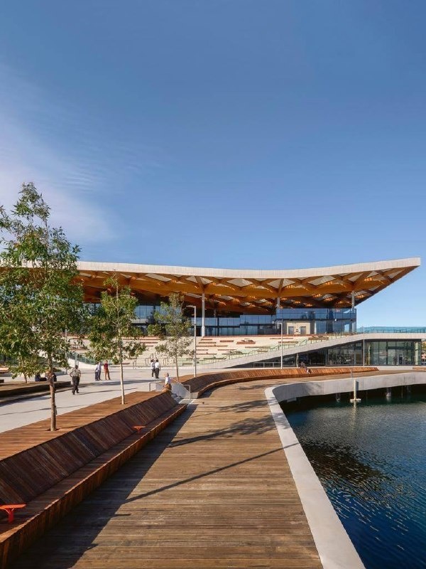 Одни из ключевых - гибкость и адаптивность. После пандемии стало особенно очевидно: пространство должно быстро менять свою функцию. Хороший пример такого подхода - новый рыбный рынок Sydney Fish Market в заливе Блэкваттл. Это полноценная городская инфраструктура с запасом на десятилетия. Уникальность проекта в его модульной структуре. Торговые и общественные зоны под гигантской крышей не имеют жёстких капитальных стен. Это «план открытого типа», который позволяет интерьеру «пересобираться» под текущую задачу, а потоки людей легко перенастраивать. Отдельные зоны (модули) могут работать поодиночке или объединяться в кластеры для проведения крупных мероприятий, фестивалей и выставок, выходя за рамки обычной рыбной торговли. Гигантская волнообразная крыша рынка, имитирующая волны, собрана из 407 стандартизированных алюминиевых «кассет» и 594 деревянных балок. Такая конструкция упрощает ремонт и позволяет заменять или модернизировать отдельные элементы (например, добавлять солнечные па
