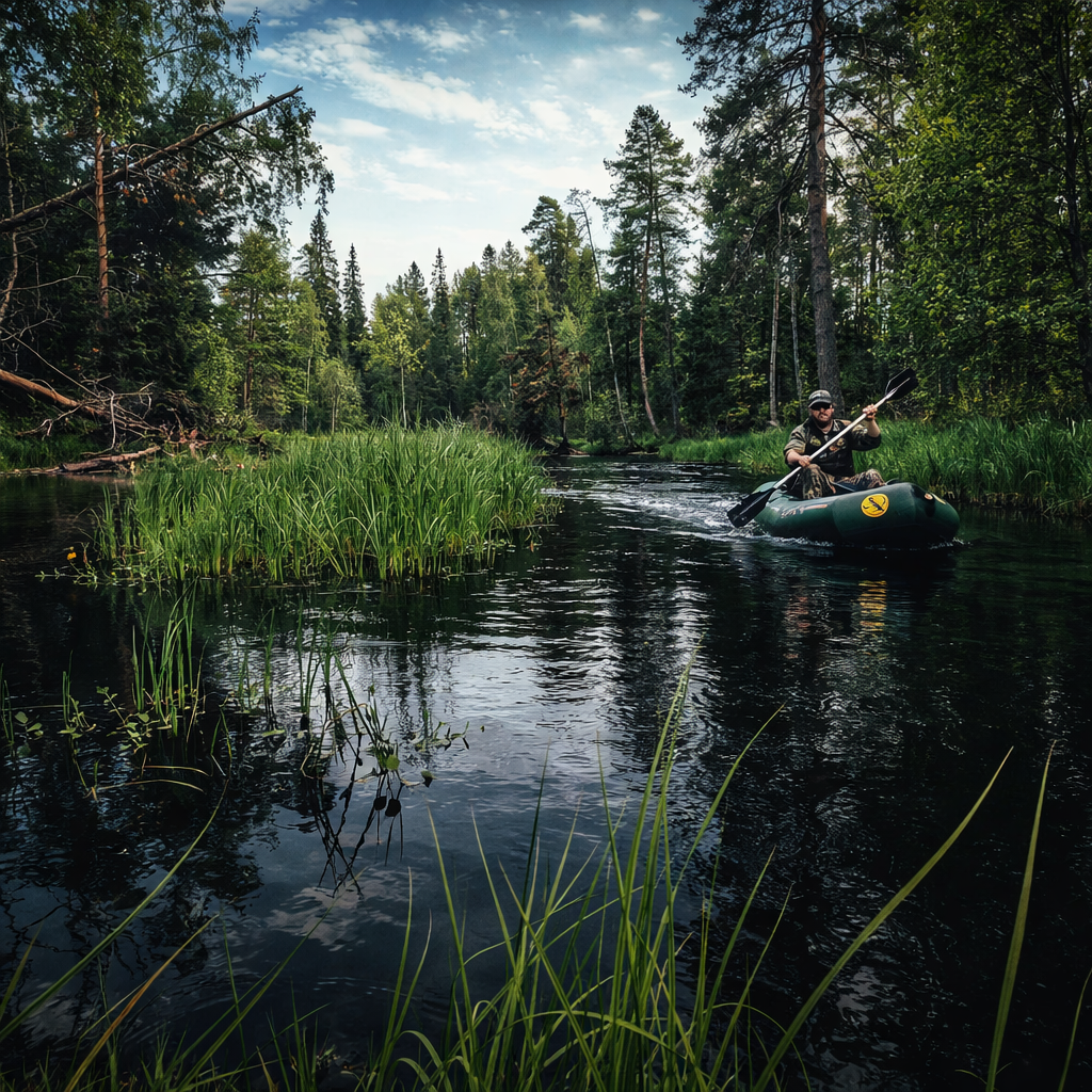 Впереди — только шум воды и бескрайний зеленый океан. Нет ни дороги, ни цивилизации, только ты, байдарка и дикая река, зовущая за собой. Эта история началась как спонтанное решение, подстегнутое вечным зовом приключений. Мне всегда казалось, что реки — скрытые артерии природы, ведущие к неизведанным уголкам. И вот, я, вооруженный байдаркой, спасательным жилетом и духом первооткрывателя, стоял на берегу широкой, но стремительной реки, теряющейся в густой чаще. Первые гребки были робкими, осторожными. Река, казалось, испытывала меня, подталкивая небольшими волнами и закручивая в мелких водоворотах. Но чем дальше я отчаливал от берега, тем сильнее становилось ощущение единения с природой. Лес, плотный и таинственный, подступал к самой воде, обнимая реку своими зелеными объятиями. Воздух был густым, наполненным ароматами влажной земли, хвои и цветущих лесных трав. Приключение быстро набрало обороты. Река начала становиться капризнее. Появились перекаты, где вода с ревом разбивалась о камни