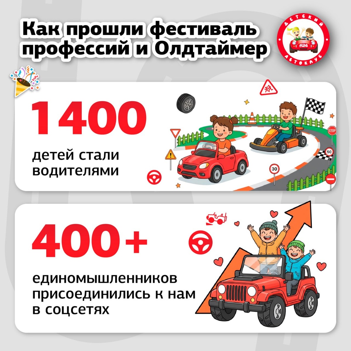 1400 юных водителей и 350 новых друзей — итоги двух событий: Фестиваля профессий и Выставки ретротехники Олдтаймер, в которых Детский Автоклуб принял участие. В эти дни многие ребята впервые сели за руль и прохеали первые метры по автогородку. С этих шагов начинается путь к настоящим правам и безопасному поведению на дорогах. Спасибо всем, кто был с нами и рады приветствовать новое поколение юных водителей. Следите за новостями, и приходите на первые занятия в новой группе. Запишитесь: https://vk.cc/cKhwdX — количество мест ограничено. #ДетскийАвтоклуб #Спб #дети #Авто #кстати