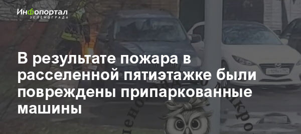В результате очередного пожара в одной из расселенных пятиэтажек оказались повреждены припаркованные у дома машины
