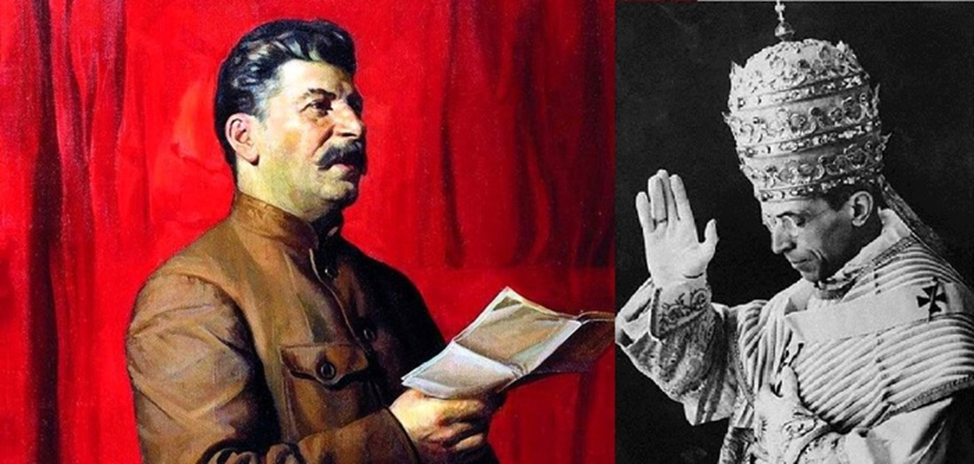 Уинстон Черчилль в своих мемуарах писал, что в 1935 г. министр иностранных дел Франции Пьер Лаваль (впоследствии известный коллаборационист, казнённый в 1945 г.) во время переговоров с Иосифом Сталиным в Москве, попросил его «сделать что-нибудь для поощрения религии и католиков в России», чтобы облегчить ему, Лавалю, переговоры с Папой Римским. На что якобы Сталин сказал: «Папа! А у него сколько дивизий?».
