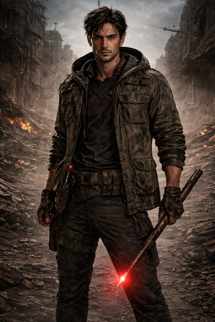 Мужчина разрезал воздух палочкой, и из палочки вылез красный хлыст. Мужчина махнул рукой, хлыст ударил одного зомби по шее, и его голова упала на землю, другого зомби хлыст ударил сверху и разрубил на две части. Мужчина продолжал махать волшебной палочкой, красные искры летели в разные стороны, и вот, спустя недолгое время, все зомби лежали на земле без движения.
