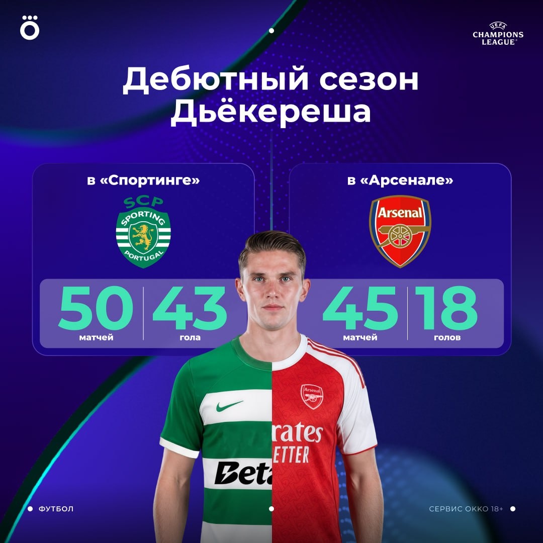 🏃➡️ Первый сезон Дьёкереша в «Арсенале» идет не по плану. Дела в «Спортинге» складывались иначе.