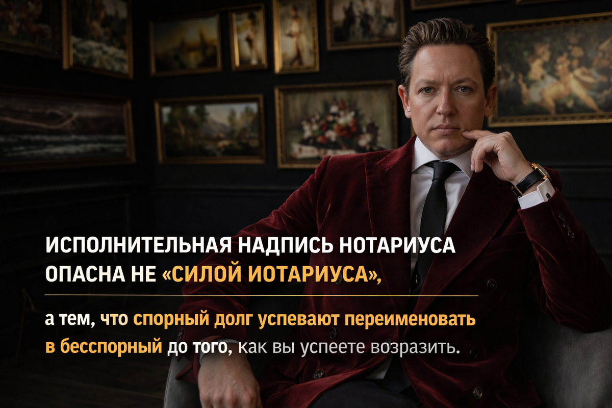 Исполнительная надпись нотариуса опасна не «силой нотариуса», а тем, что спорный долг успевают переименовать в бесспорный до того, как вы успеете возразить.