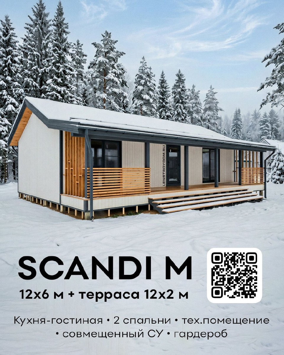 Жилая основа дома 12х6 м + терраса 12х2 м. В проекте предусмотрены кухня-гостиная, две спальни, совмещенный СУ, гардеробная, прихожая и тех помещение. 3 000 000 ₽ Теплый контур 3 700 000 ₽ Под ключ Подробности на сайте: clck.ru/3T3zaM #ленстройдом #каркасныедома #scandi_m www.lenstroydom.ru +7 (812) 408-30-08 скандимини.рф +7 (812) 504-80-80