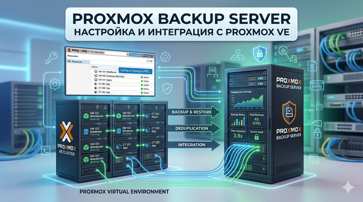 В среде виртуализации Proxmox VE резервное копирование это не просто рекомендация, а критически важный компонент инфраструктуры. Штатный инструмент vzdump создаёт архивы виртуальных машин, но имеет ограничения. Хранение полных копий занимает много места. Инкрементальные бэкапы работают неэффективно. Централизованное управление бэкапами в кластере требует дополнительных усилий. К тому же стандартные бэкапы на NFS или CIFS шары не обеспечивают дедупликацию данных и шифрование на стороне клиента. Администратору нужно решение, которое минимизирует занимаемое место, ускоряет восстановление и безопасно хранит данные. Proxmox Backup Server (PBS) это специализированное решение, разработанное для устранения этих проблем.