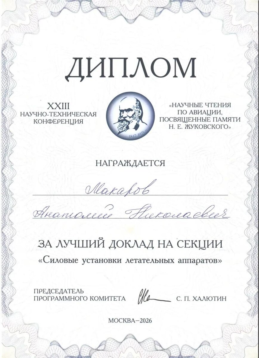 ✈ Ученый ТвГТУ награжден дипломом за доклад на научно-технической конференции по авиации в Москве