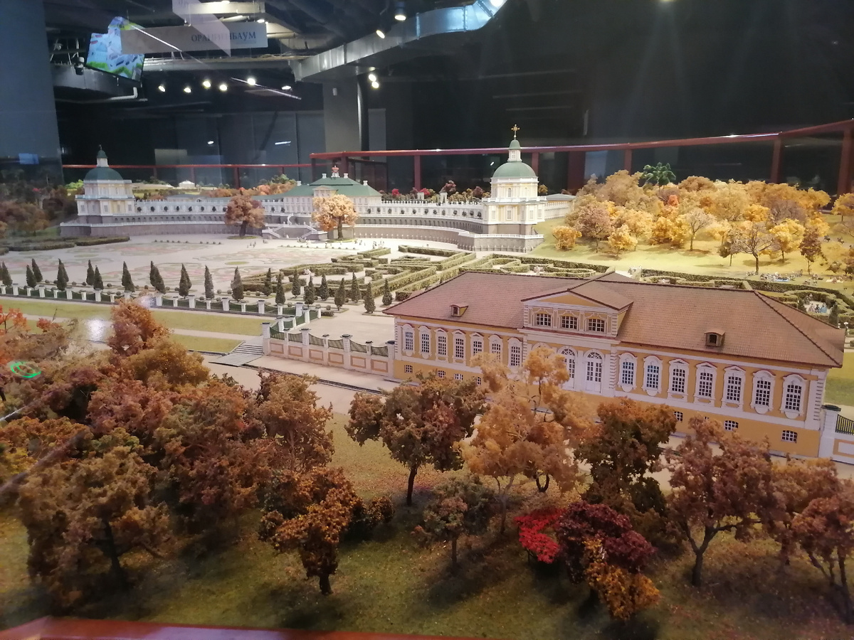 Интерактивный макет в масштабе 1:87 включает в себя наиболее значимые достопримечательности Петербурга и пригородов: Петергофа, Ораниенбаума, Кронштадта.