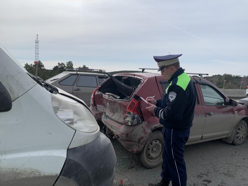 Водитель «Пежо Боксер» ехал со стороны Тюмени в направлении Екатеринбурга. Он не рассчитал скорость и не справился с управлением, после чего врезался в стоявший впереди «Рено Сандеро». От удара «Рено» отбросило на «Шкоду Суперб», а та, в свою очередь, столкнулась с «Киа Рио», которая стояла впереди и ждала, когда повернёт другой автомобиль.
