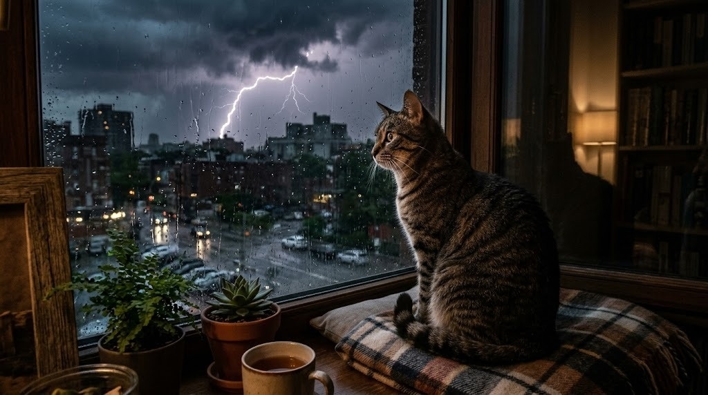 Гроза только собирается - а в квартире уже происходит кое-что интересное. Кошка исчезла. Тихо, незаметно, как будто растворилась. Найдёте её через час под кроватью или в шкафу среди зимних вещей. Собака - наоборот. Ходит за вами по пятам. Садится на ноги. Смотрит в лицо. Если вы сели - ложится сверху. Один и тот же раздражитель. Две принципиально разные реакции. Почему? Это первое, что нужно понять: ни собака, ни кошка не ждут первого удара грома, чтобы начать реагировать. Гроза сопровождается несколькими физическими изменениями задолго до видимых признаков: падение атмосферного давления, изменение влажности воздуха, нарастание статического электричества в атмосфере, инфразвуковые колебания - звуки с частотой ниже порога человеческого слуха. Кошка - одиночный охотник. В дикой природе у неё нет стаи, к которой можно обратиться в момент опасности. Есть только она сама, её укрытие и её умение быть незаметной. Именно это кошка и делает при грозе. Гроза - это мощный неконтролируемый раздраж