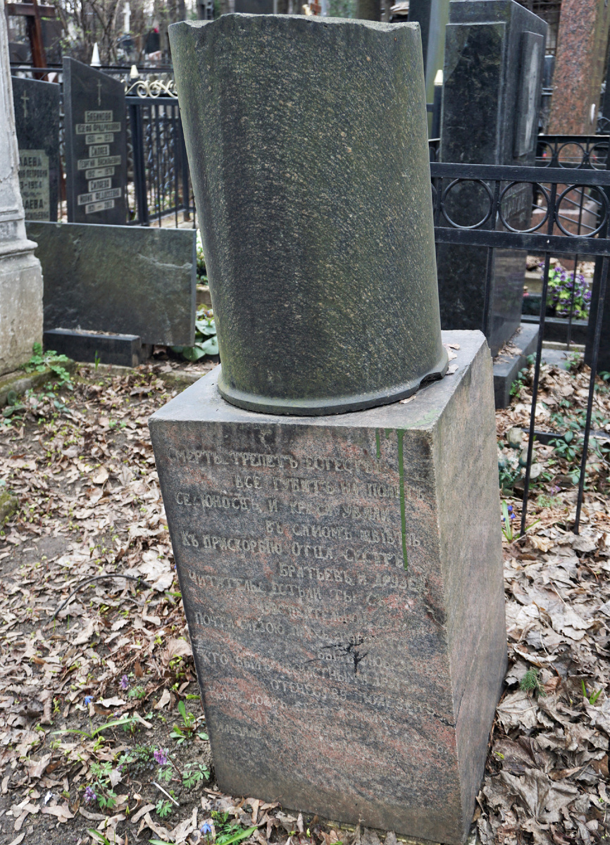 Этот массивный памятник стоит на могиле шотландца Роберта МакГилла (Романа Романовича Мак-Гилля). Он был промышленником и фактически одним из «отцов» хорошо знакомого мне подмосковного города Высоковска.