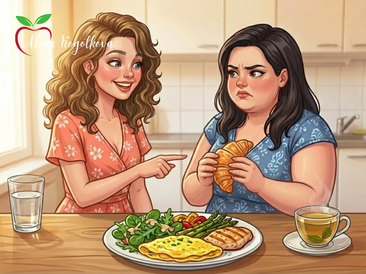 Алёна Коготкова — ваш нутрициолог, которая любит поесть, не бегает марафоны, но знает, как подружить еду и фигуру. Без драмы. Без запретов. Без героизма.