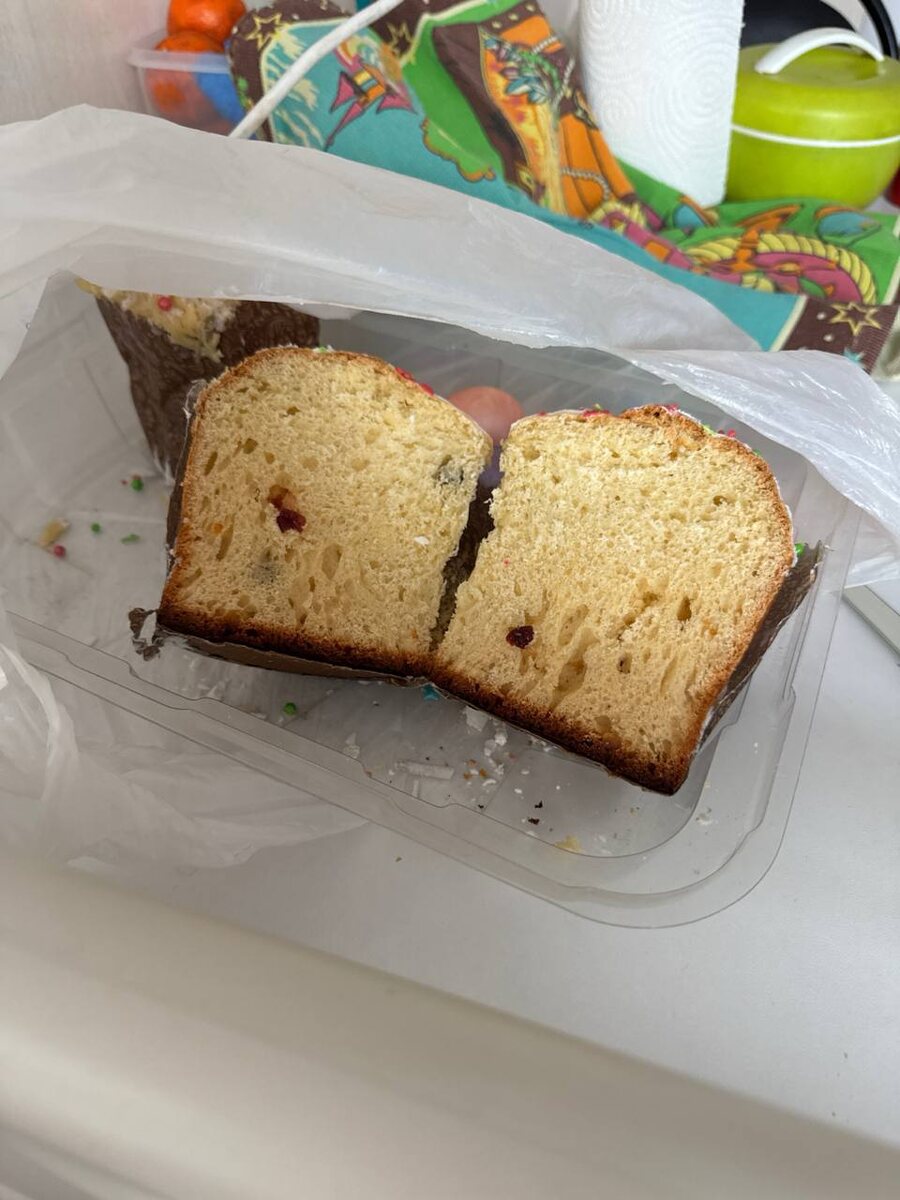 Решила поужинать сегодня куличом, который вчера мы готовили у бабушки и папы😌🥰