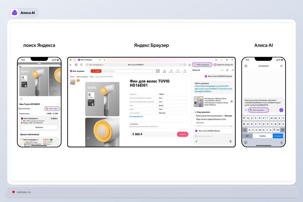 ИИ-агент «Найти дешевле» стал доступен всем пользователям Алисы AI #Яндекс #Алиса #АлисаAI Яндекс открыл доступ к ИИ-агенту «Найти дешевле» для всех пользователей Алисы AI. Он помогает находить выгодные предложения, экономить до 25% и оформлять покупки прямо в чате за несколько минут https://www.comss.ru/page.php?id=20265