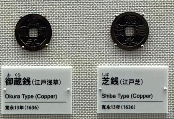 В эпоху Эдо, наряду с золотыми: серебрянными: ходили и медные монеты. Познакомился с основными типами этих монет, представленных в музее города Нагои. История монет «Канъэй Цухо» началась с их чеканки в городе Мито в 3-й год эры Канъэй (1626 г.). Позже, в 13-й год эры Канъэй, во времена правления