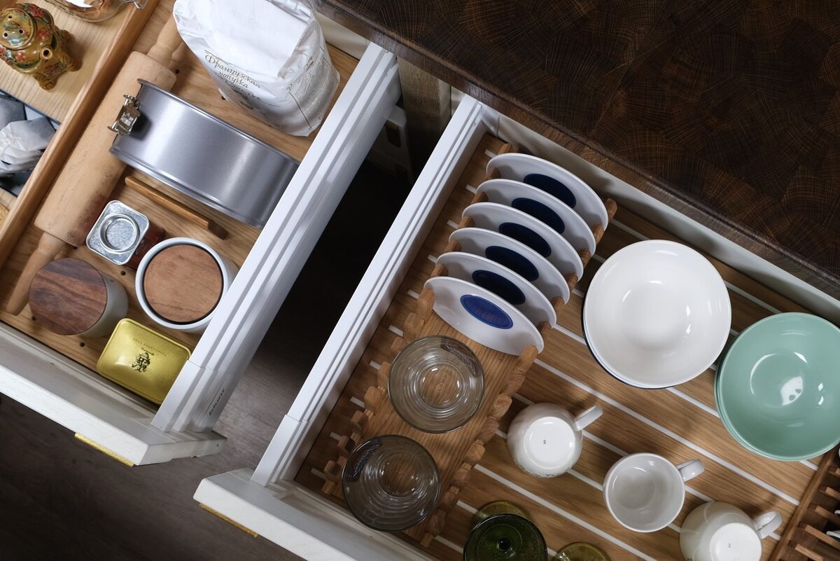 Можно потратить на кухню крупную сумму и все равно получить ощущение, что она выглядит дешевле, чем есть на самом деле. Причина почти всегда одна: детали, которые мозг считывает мгновенно. Причем чаще всего речь идет не о фасадах или технике, а о том, что находится внутри, и именно эти нюансы формируют первое и самое честное впечатление. Ниже — три вещи, которые быстрее всего удешевляют кухню. Самый сильный визуальный триггер — беспорядок. Даже если снаружи кухня выглядит идеально, достаточно открыть ящик и увидеть приборы вперемешку, чтобы общее ощущение резко изменилось. Мозг воспринимает хаос как отсутствие системы, а значит — как более низкий уровень пространства. В дорогих кухнях порядок не поддерживают вручную, его проектируют. У каждой вещи есть свое место, а сама система хранения устроена так, чтобы порядок сохранялся автоматически. Если этого нет, кухня всегда будет казаться менее продуманной, чем есть на самом деле. Вторая ошибка — отсутствие единой логики внутри. Когда в одн