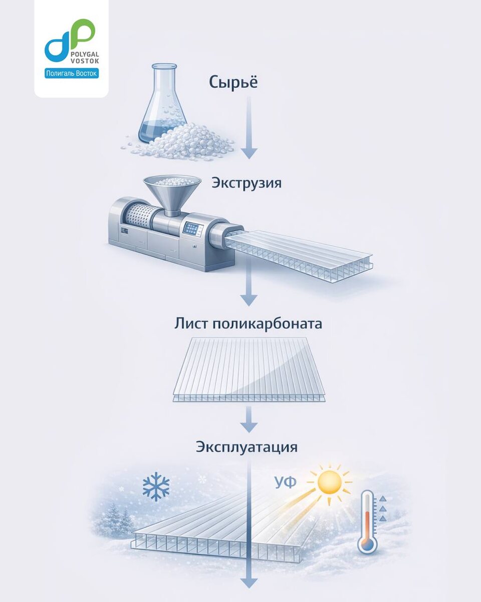 » 🧪 Качество поликарбоната начинается не с листа, а с сырья - именно оно определяет, как материал будет вести себя в реальных условиях эксплуатации. ⭐ Для производства используется проверенное полимерное сырьё с прогнозируемыми характеристиками - это позволяет обеспечить стабильную прочность, прозрачность и устойчивость к нагрузкам. Почему происхождение сырья критично:👇 🔵 от него зависит ударопрочность при морозе 🟢 стабильность геометрии при перепадах температур 🔵 устойчивость к ультрафиолету и старению В сложных климатических условиях именно качество сырья определяет, «живет» ли лист годами или начинает разрушаться уже после нескольких сезонов - морозы, снег, ветер и резкие перепады температуры быстро выявляют слабые места. ❗️Поэтому для регионов с суровым климатом особенно важно выбирать материал с понятным происхождением и стабильными свойствами. 📲Наш канал в макс