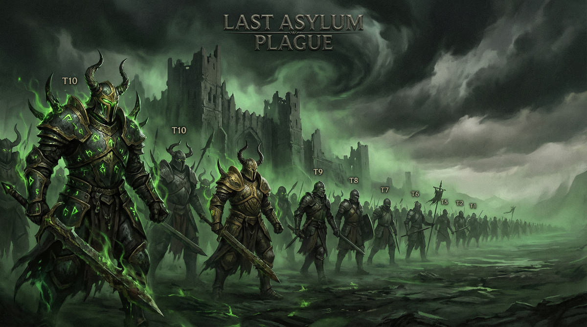 В Last Asylum: Plague войска делятся на десять тиров. Разница между T1 и T10 — это не просто цифры. Это разные измерения.