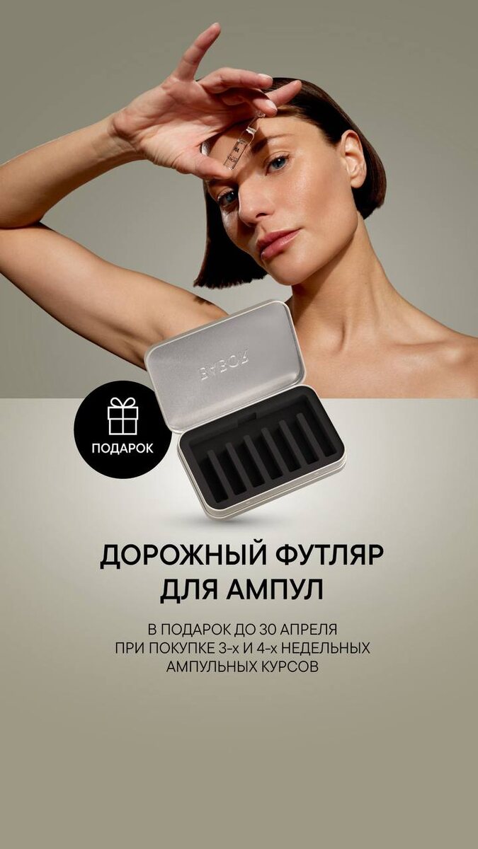 До 30 апреля при покупке ампульных курсов BABOR вы получаете дорожный футляр в подарок 🎁 Он помогает бережно хранить ампулы и брать их с собой куда угодно. — 4-недельный курс «Нет морщинам» — 3-недельный курс «Чудесное омоложение» — 3-недельный курс «Эффект золушки» — 3-недельный курс «Королева бала» — 4-недельный курс «Лифтинг» Компактный металлический футляр — для 7 ампул и вашего спокойствия за их сохранность. Условия акции — на сайте и в приложении BABOR ❤️ #BABOR #BABOR_акции ВК | РИТМ | ДЗЕН | ПРИЛОЖЕНИЕ