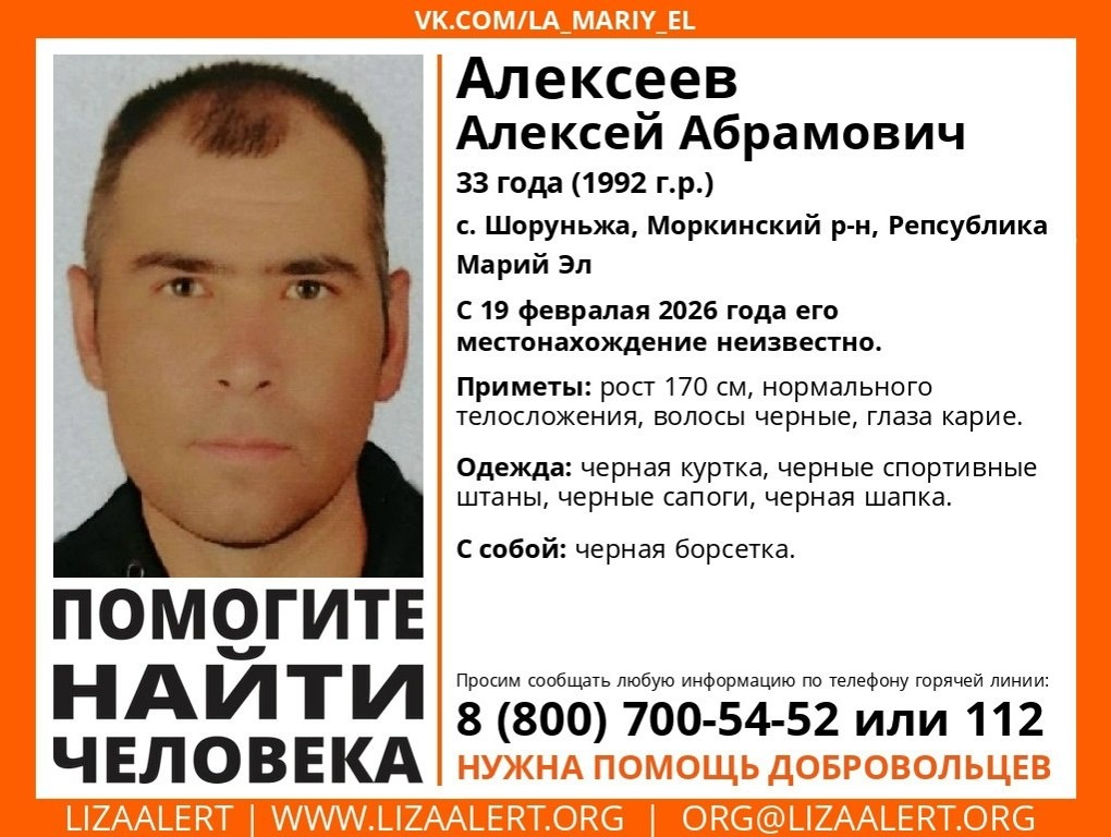 ΠΎΠΆΠ΄Π΅Π½ΠΈΠ΅ Π½Π΅ΠΈΠ·Π²Π΅ΡΡΠ½ΠΎ. π ΠΡΠΈΠΌΠ΅ΡΠ°ΠΌΠΈ ΠΏΡΠΎΠΏΠ°Π²ΡΠ΅Π³ΠΎ ΠΆΠΈΡΠ΅Π»Ρ ΡΠ΅Π»Π° Π¨ΠΎΡΡΠ½ΡΠΆΠ° ΠΠΎΡΠΊΠΈΠ½ΡΠΊΠΎΠ³ΠΎ ΡΠ°ΠΉΠΎΠ½Π° ΠΠ°ΡΠΈΠΉ ΠΠ» Π΄Π΅Π»ΠΈΡΡΡ ΠΏΠΎΠΈΡΠΊΠΎΠ²ΡΠΉ ΠΎΡΡΡΠ΄ Β«ΠΠΈΠ·Π°ΠΠ»Π΅ΡΡΒ»: ΡΠΎΡΡ 170 ΡΠ°Π½ΡΠΈΠΌΠ΅ΡΡΠΎΠ², Π½ΠΎΡΠΌΠ°Π»ΡΠ½ΠΎΠ΅ ΡΠ΅Π»ΠΎΡΠ»ΠΎΠΆΠ΅Π½ΠΈΠ΅, ΡΠ΅ΡΠ½ΡΠ΅ Π²ΠΎΠ»ΠΎΡΡ ΠΈ ΠΊΠ°ΡΠΈΠ΅ Π³Π»Π°Π·Π°. ΠΠ»Π΅ΠΊΡΠ΅ΠΉ ΠΌΠΎΠΆΠ΅Ρ Π±ΡΡΡ ΠΎΠ΄Π΅Ρ Π² ΡΠ΅ΡΠ½ΡΡ ΠΊΡΡΡΠΊΡ, ΡΠ°ΠΊΠΎΠ³ΠΎ ΠΆΠ΅ ΡΠ²Π΅ΡΠ° ΡΠΏΠΎΡΡΠΈΠ²Π½ΡΠ΅ ΡΡΠ°Π½Ρ, ΡΠ΅ΡΠ½ΡΠ΅ ΡΠ°ΠΏΠΎΠ³ΠΈ ΠΈ ΡΠ΅ΡΠ½ΡΡ ΡΠ°ΠΏΠΊΡ. ΠΡΠΈ ΡΠ΅Π±Π΅ Ρ Π½Π΅Π³ΠΎ ΡΠ΅ΡΠ½Π°Ρ Π±Π°ΡΡΠ΅ΡΠΊΠ°. βοΈ ΠΡΠ»ΠΈ Π²Π°ΠΌ ΠΈΠ·Π²Π΅ΡΡΠ½Π° Π»ΡΠ±Π°Ρ ΠΈΠ½ΡΠΎΡΠΌΠ°ΡΠΈΡ ΠΎ ΠΏΡΠΎΠΏΠ°Π²ΡΠ΅ΠΌ ΠΌΡΠΆΡΠΈΠ½Π΅, ΡΠΎ ΠΌΠΎΠΆΠ΅ΡΠ΅ ΠΏΠΎΠ·Π²ΠΎΠ½ΠΈΡΡ ΠΏΠΎ Π½ΠΎΠΌΠ΅ΡΡ 8 (800) 700-54-52 ΠΈΠ»ΠΈ 112. π² Β«ΠΠ°ΡΠΈΠΉΡΠΊΠ°Ρ ΠΏΡΠ°Π²Π΄Π°Β» ΠΎΡΠ»ΠΈΡΠ½ΠΎ ΡΠ°Π±ΠΎΡΠ°Π΅Ρ Π² ΠΠΠ₯!