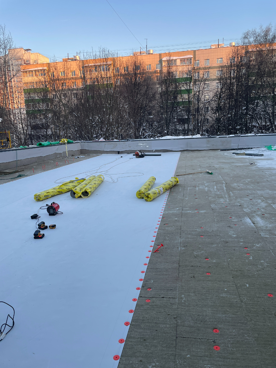 Напыляемая пенополиуретановая изоляция Такой вариант изоляции достаточно популярен из-за ее высокого теплового сопротивления, бесшовного применения и универсальности. Изоляция наносится непосредственно на настил крыши и может соответствовать любой форме, размеру или основанию. Пенополиуретан также может улучшить структурную целостность крыши и действовать как барьер против влаги и утечки воздуха. Однако может быть дорогостоящей и требует профессиональной установки. Утеплитель из стекловолокна – хороший вариант для плоских крыш. Он устанавливается между лагами крыши и защищается пароизоляцией и гидроизоляцией. Изоляция из стекловолокна широко доступна, проста в установке и может обеспечить достаточную изоляцию для умеренного климата. При монтаже нужно обязательно иметь защитные приспособления. Изоляция каменной ватой. Изоляция из каменной ваты негорюча, устойчива к влаге и вредителям, имеет высокое значение теплового сопротивления. Каменная вата может комбинироваться с другими изоляцион