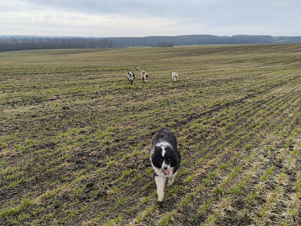 Мы с собаками проводили Ваню на работу и отправились гулять по полям. Воздух наполняло щебетание птиц – не по-летнему густое, а по-весеннему звонкое. При этом самих пернатых не было видно, однако казалось, что они повсюду. Собаки, довольные, носились по полям, оставляя во влажной земле отпечатки лап, прошивая ее стежками своих следов. Они совали любопытные носы во множество норок, появившихся из-под снега после зимы, и совершенно бессовестным образом расширяли мышиные проходы так, чтобы туда пролезла хотя бы половина собачьей морды. Я почти бесцельно брела по полю, наблюдая за искренней и безудержной радостью стаи. Несмотря на все обработки, меня, конечно, посещали мысли и о клещах, когда собаки залезали в кусты. Но куда ж без обыденности в нашей романтике? Когда мы уже шли домой, недалеко от нас, впереди, внезапно сорвался и понесся вскачь заяц. Собаки, разумеется, тоже рванули за ним. К счастью, «с собой» у меня сегодня были в основном якуты, которые готовые реагировать на мой голос