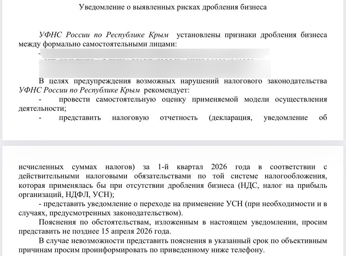 Налоговая служба начала массовую рассылку предпринимателям по всей стране требований с запросом пояснений: «а не дробление ли у вас?»