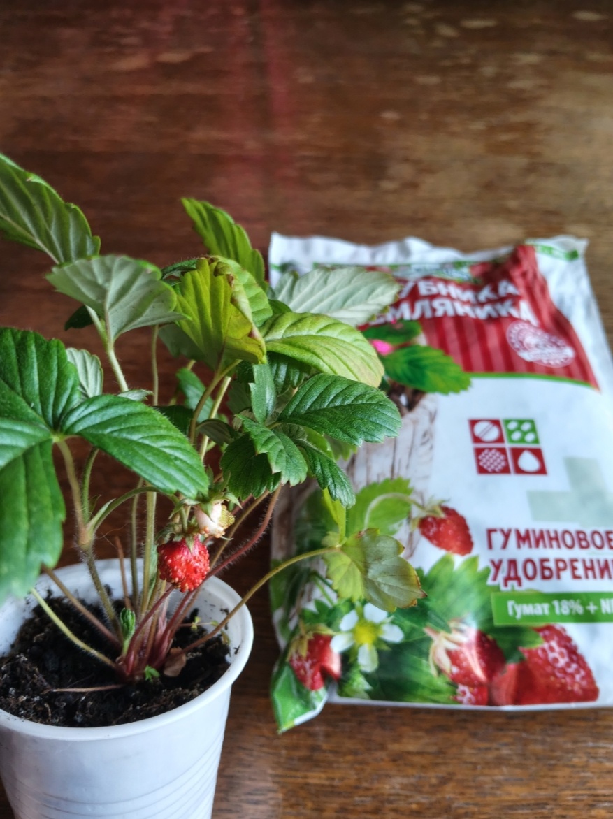 рассада уверенно стоит и не вянет. Перед подкормкой полейте рассаду обычной водой за день или хотя бы за пару часов. Это важно: на сухой почве удобрение может обжечь нежные корешки. Существует множество советов по удобрению рассады клубники. Мы же предпочитаем Гумат калия от группы компании Группа компаний «Сахалинские Гуматы» . Вот почему. Мягкое действие. Гумат калия не обжигает хрупкие корни и листья, в отличие от многих минеральных удобрений. Он работает деликатно — как витаминка, а не как ударная доза химии. Снижает стресс. После пикировки рассада переживает: корни травмированы, условия изменились. Гумат помогает растениям быстрее прийти в себя и адаптироваться. Стимулирует корни. Благодаря гумин