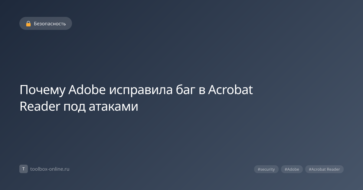 Adobe выпустила исправление уязвимости в Acrobat Reader 12 марта 2026 года, закрыв возможность выполнения произвольного кода через специально сформированный PDF‑документ. Патч устраняет критический баг, который был активно эксплуатируем в течение нескольких недель. Уязвимость была обнаружена независимыми исследователями безопасности 5 апреля 2026 года, когда они заметили аномальное поведение при открытии PDF‑файлов, содержащих специально зашифрованный объект. В результате детального анализа было установлено, что уязвимость позволяет выполнить произвольный код с правами текущего пользователя, что открывает путь к полной компрометации системы. Уязвимость классифицировалась как Critical (CVSS‑база 9.8) потому что она предоставляет удалённому атакующему возможность выполнить любой код без взаимодействия с пользователем. Статистика показала, что в течение 2‑х недель до выпуска патча более 30 % целевых систем получили эксплойты, а потенциальные убытки оценивались в 12 млн рублей для среднего