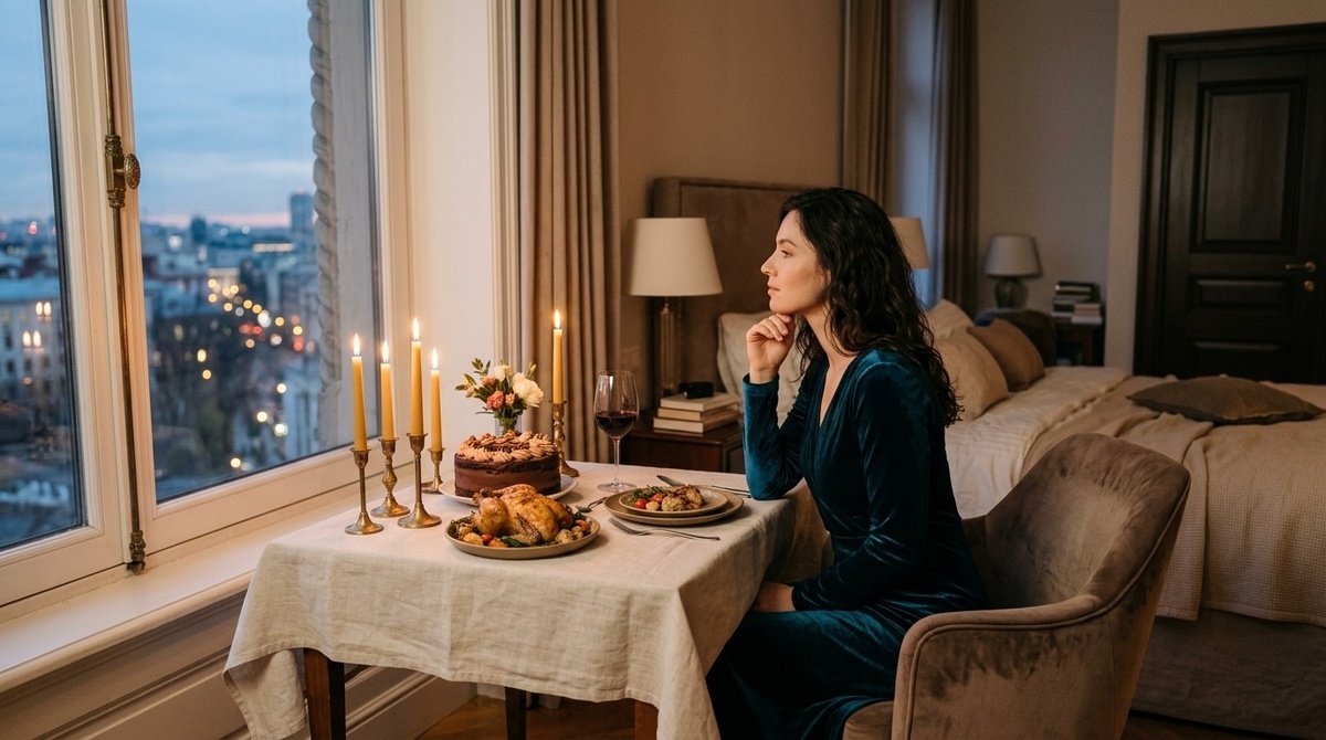 Достала парадную скатерть – белую, с мережкой по краю. Расставила тарелки, те самые, из сервиза, который они покупали вместе на годовщину свадьбы. Курица томилась в духовке уже полтора часа, соус из вишни стоял в соуснике. Медовик дожидался в холодильнике. Свечи стояли в латунных подсвечниках — мамин подарок на новоселье.