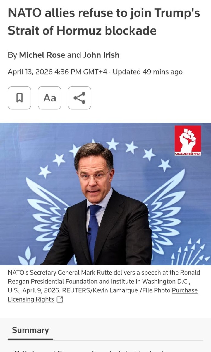 🇺🇸🇪🇺 НАТО не поддержало блокаду Ормузского пролива