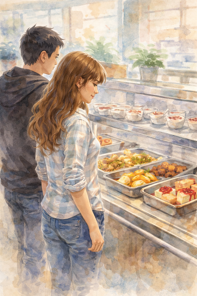 Новый проект протестировали в университетской столовой. Оля стояла в очереди с подносом. Впереди неё был Илья. Он молчал. Она задумчиво смотрела на его затылок. Ей хотелось понять: думает ли он о ней? Или его мысли заняты только «дружбой»?