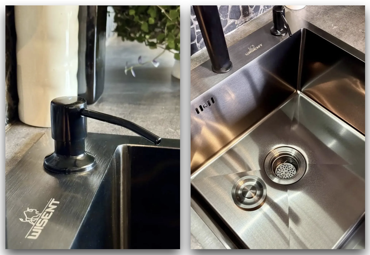 Здравствуйте, дорогие друзья! Ну что, как-то я уже делилась с вами своими столами на даче, а теперь пришла очередь кухни. Наконец-то мы добрались до моей мойки! Признаюсь честно, я уже немного «пилила» мужа по этому поводу. Но зато теперь она у меня есть - новенькая, блестящая и такая, как я хотела! Я очень люблю обновления в интерьере, но не всегда есть возможности и средства, чего уж там. Поэтому каждая такая перемена, как маленький праздник! Почему я решила менять? До этого у меня была раковина с чёрным покрытием. Сначала я ей очень радовалась. Но потом поняла - она слишком привередливая! Многие чистящие средства ей не подходят, нельзя тереть слишком усердно. А не чистить раковину нельзя - это же разводить бактерии, вы меня понимаете. Любая хозяйка знает, что на кухне должна быть чистота. Что я выбрала? Я искала компромисс: чтобы мойка была из надёжной нержавейки, но при этом тёмная с PVD покрытием, чтобы идеально подходила к моей кухне. Не светлый металл, а именно графитовый цвет.