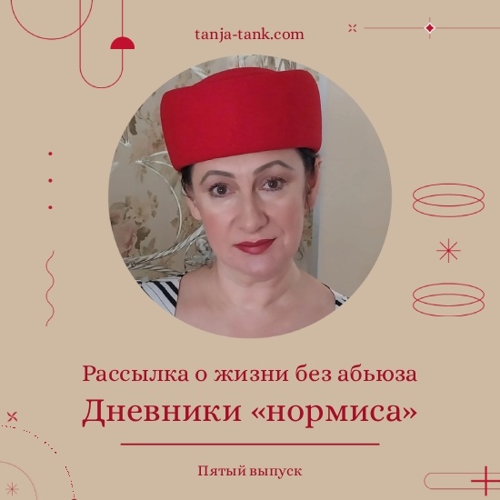 Цена - всего 390 рублей в месяц за ДВА больших, интересных и, надеюсь, полезных письма, в которых много фото. Ничего подобного я в Сеть не выкладываю. *** Не хотите брать "кота в мешке"? По ссылке https://tanja-tank.com/dn пролистывайте вниз, подписывайтесь и получайте бесплатную пилотную рассылку! *** Подробнее о моей новой рассылке о жизни без абьюза «Дневник «нормиса» и чем она может быть вам интересна, читайте на https://tanja-tank.com/dn *** Пропустили интересные мартовские рассылки? На https://tanja-tank.com/dn уже открыта продажа "архивных" писем.