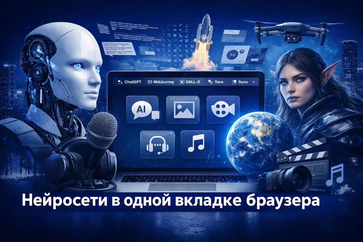 Узнайте, как использовать нейросети прямо в одной вкладке браузера. Практические советы, удобные сервисы и возможности AI без лишних установок. Когда нейросети только начали массово появляться, большинство пользователей открывали десятки вкладок: отдельно ChatGPT, где-то MidJourney, потом ещё генератор звука… В какой-то момент браузер превращался в хаос. Сейчас всё меняется — появляются решения, которые объединяют ИИ в одном месте. Например, можно открыть один сервис вроде этого агрегатора нейросетей и закрыть половину вкладок. Удобно? Более чем. Давайте разберёмся, как это работает на практике, какие инструменты реально доступны и стоит ли вообще переходить на формат «всё в одной вкладке». Если коротко — это платформа, где собраны разные ИИ-инструменты в одном интерфейсе. Не нужно переключаться между сайтами, логиниться по 10 раз и держать в голове, где что находится. Раньше схема выглядела так: Сейчас — единая панель. Как будто «операционная система для нейросетей». Честно говоря, я