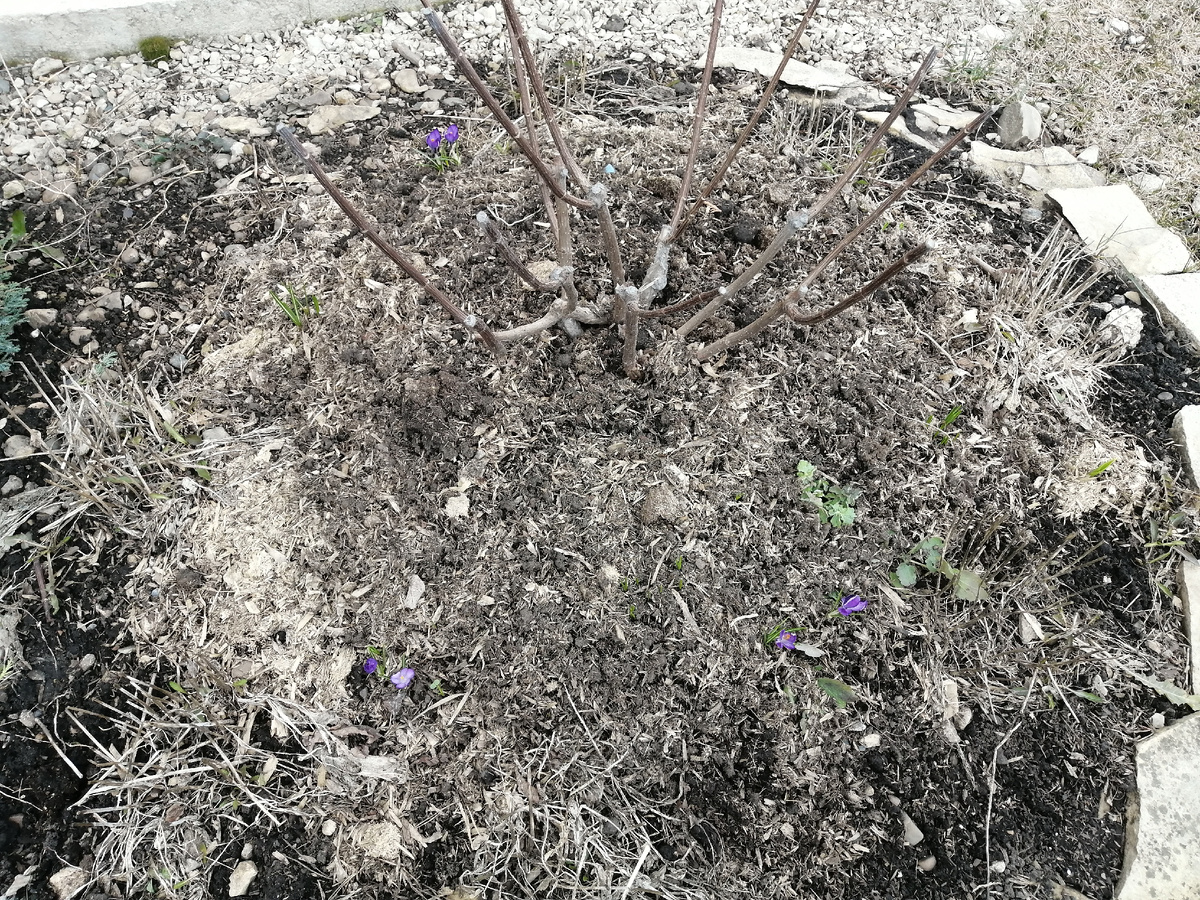 Фото с состоянием моих роз сейчас будут в следующей статье о них. Они ещё не все отошли от снега, где получилось, я отгребла компост от ствола розы.