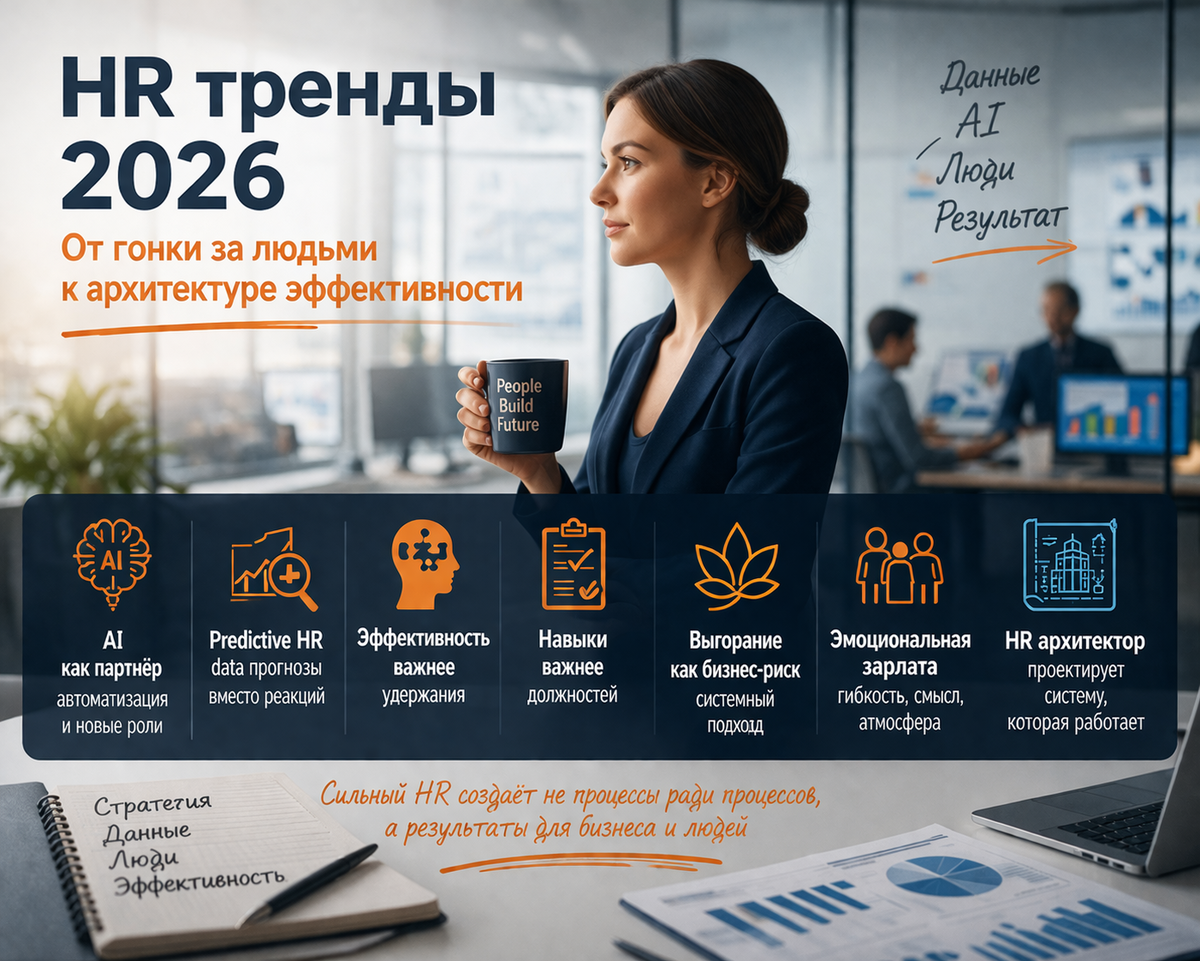 а те, кто правильно перепроектировал работу. Данные больше не просто фиксируют прошлое. Теперь задача — предсказывать: HR всё чаще работает как аналитическая функция: не «что произошло», а «что произойдёт» . Раньше ключевой KPI — удержание. Теперь: Появляется подход: управление качеством команды