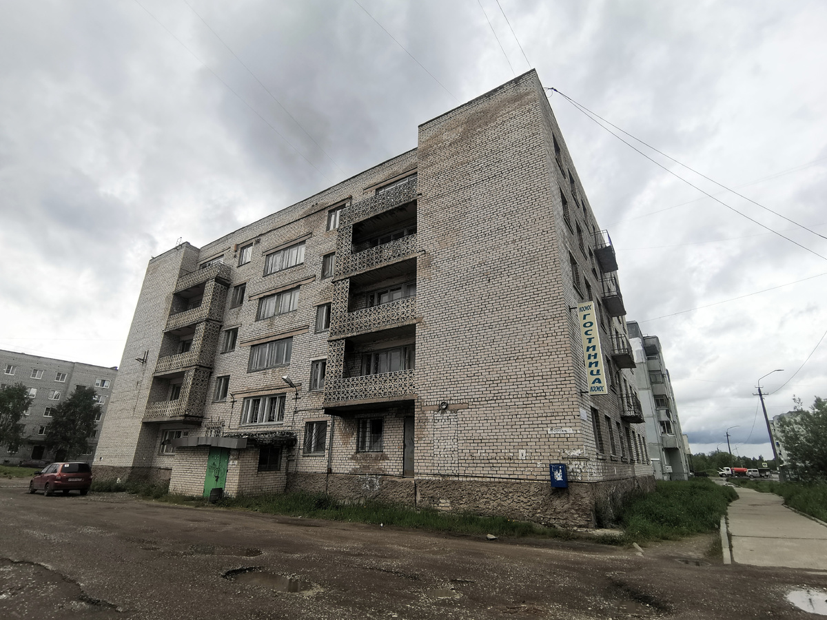 После пары часов в окрестностях водохранилища Печорской ГРЭС пора было возвращаться в город и продолжить путь уже там. Таксист почтенного возраста на своей верной «Волге» подвёз меня до речной части. А если точнее, то до ныне уже недействующей гостиницы «Космос». Она расположена практически в начале Печорского проспекта — главной артерии этой части города. Именно отсюда я отправился дальше пешком.