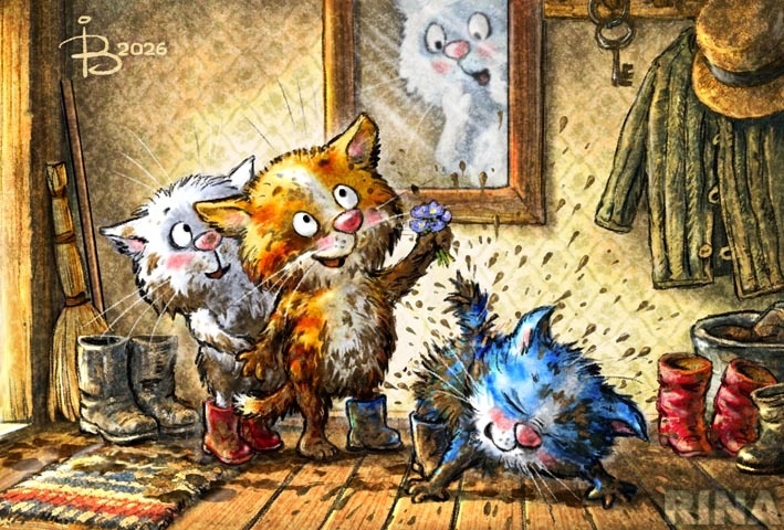 Порция радости: 25 новых и любимых картинок про синих котов от Рины Зенюк