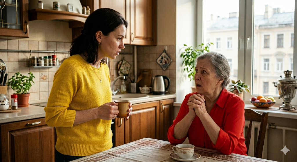 Нина Георгиевна медленно опустилась на стул. Что-то в её лице изменилось — ушла та уверенность, с которой она вошла на кухню.