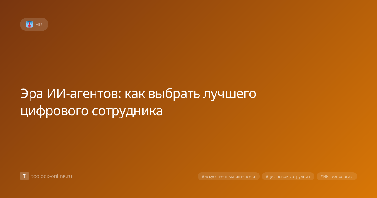 Эра ИИ‑агентов уже наступила, и лучший цифровой сотрудник — это система, которая автоматизирует подбор, адаптацию и развитие персонала, сокращая затраты на 30 % и повышая эффективность на 25 % к 2026 году. Такая платформа интегрируется с HR‑системами, обеспечивает аналитику в реальном времени и уменьшает нагрузку на рекрутеров в среднем на 12 часов в неделю. Выбор правильного ИИ‑агента позволяет сэкономить до 1 200 000 руб. в год на процессах найма. Критерии подбираются исходя из бизнес‑целей: автоматизация подбора, снижение текучести и улучшение оценки компетенций. Оцените, насколько система поддерживает интеграцию с вашими ATS и LMS, а также наличие функций предиктивной аналитики. ИИ‑агенты берут на себя рутинные задачи, позволяя HR‑специалистам сосредоточиться на стратегических инициативах. Автоматический скрининг резюме ускоряет процесс в 5 раз, а чат‑боты отвечают на вопросы кандидатов 24/7, что повышает удовлетворённость на 15 %. Сопротивление обычно связано с опасениями о замене