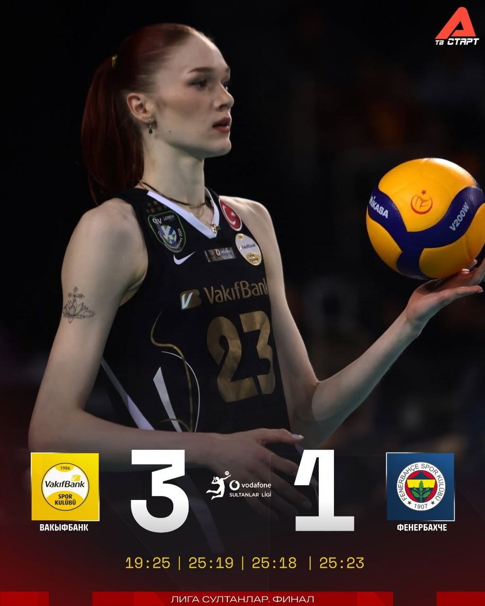 ! Переиграли «Фенер» в четырех партиях. Решающее очко, конечно же, набрала Марина Маркова. Четвертый матч финальной серии Лиги Султанлар смотрим в 19:00 на телеканале «Старт» и платформе TVSTART.RU 🖥 Подписывайся на ТВ СТАРТ в MAX📲