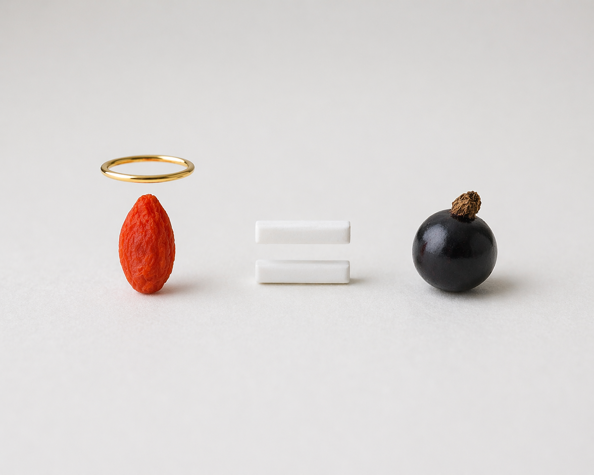 Второй элемент — это цифры. Производители любят показывать впечатляющие показатели: «содержит антиоксидантов в 10 раз больше, чем черника», «витамина С больше, чем в апельсинах». Но эти цифры часто сравнивают непонятно с чем: в сухом веществе против свежего продукта, в концентрированном порошке против цельного фрукта. А главное — большее количество антиоксидантов в лабораторном тесте не означает большей пользы для живого организма.