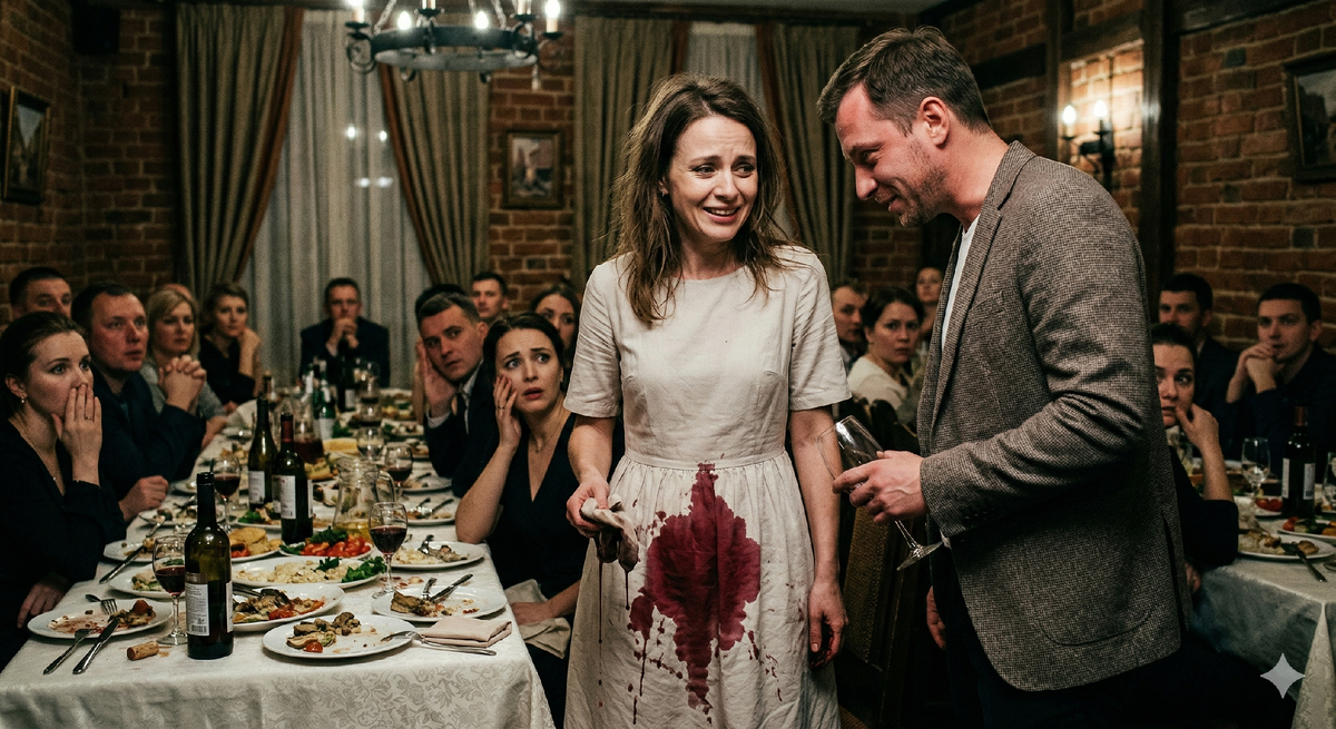 Стас потянулся к бутылке «Саперави». Его движения были размашистыми, небрежными. Он наполнил свой бокал до краев, а потом, глядя мне прямо в глаза, вдруг накренил его. Темная, густая жидкость потекла на мою светлую юбку. Не капля, не случайный всплеск. Ровная струя, впитывающаяся в дорогой итальянский хлопок.