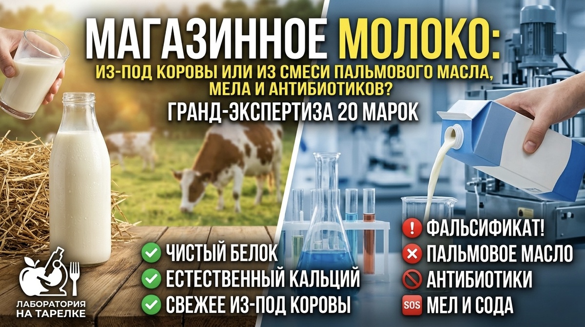 В эфире «Лаборатория на тарелке». Если в нашем прошлом расследовании мы разбирали на молекулы жевательный мармелад, а до этого искали крахмальный суррогат в магазинном варенье, то в этот раз мы взялись за основу основ продуктовой корзины. Это наш самый масштабный и глубокий лонгрид: мы закупили 20 самых популярных марок пастеризованного питьевого молока (жирностью от 2,5% до 3,2%) и прогнали их через центрифуги, спектрометры и хроматографы независимого аналитического центра. Наша главная цель — выяснить, кто честно наливает в пакеты продукт из-под коровы, а кто в погоне за сверхприбылью разводит дешевый китайский порошок водопроводной водой, щедро сдабривая его пальмовым жиром, аммиаком и содой.