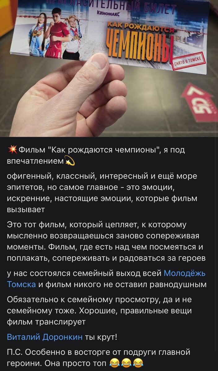 Кто ещё не был в кинотеатре на фильме «Как рождаются чемпионы» я вас приглашаю
